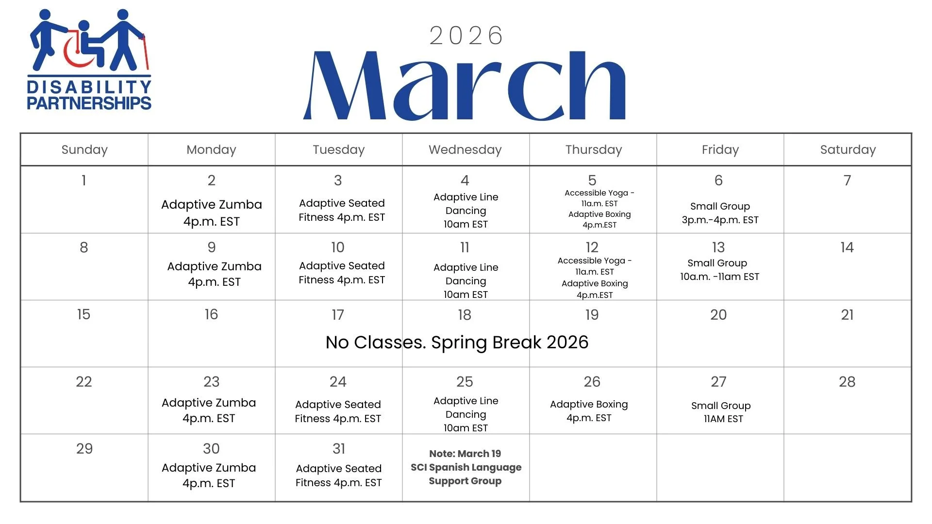 Join us for our FREE and VIRTUAL weekly adaptive fitness classes. Sign up here